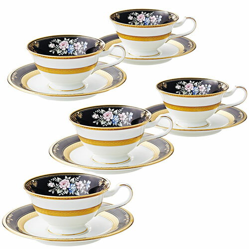 Noritake (ノリタケ) 日本製 イブニングマジェスティ ティー・コーヒーカップ&ソーサー 5客セット 【ギフト 出産内祝 結婚内祝 結婚式引出物 快気祝 法事引出物 香典返し お返し 各種内祝】