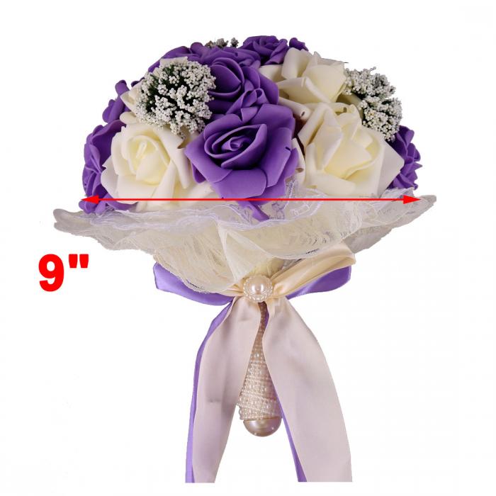 ソウテン uxcell ホールディング花束 結婚式 フォーム 結び目 装飾 ローズ 手持ち花束 パープル ライト イェロー 23cm直径