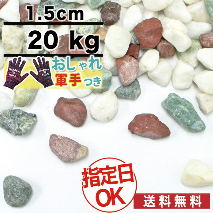 五色玉砂利 ミックス砂利 マルチカラー 直径約1.5cm 20kg 庭 防犯 おしゃれ 砂利 石約0.25平米分(敷厚4cm)【おしゃれ軍手付】