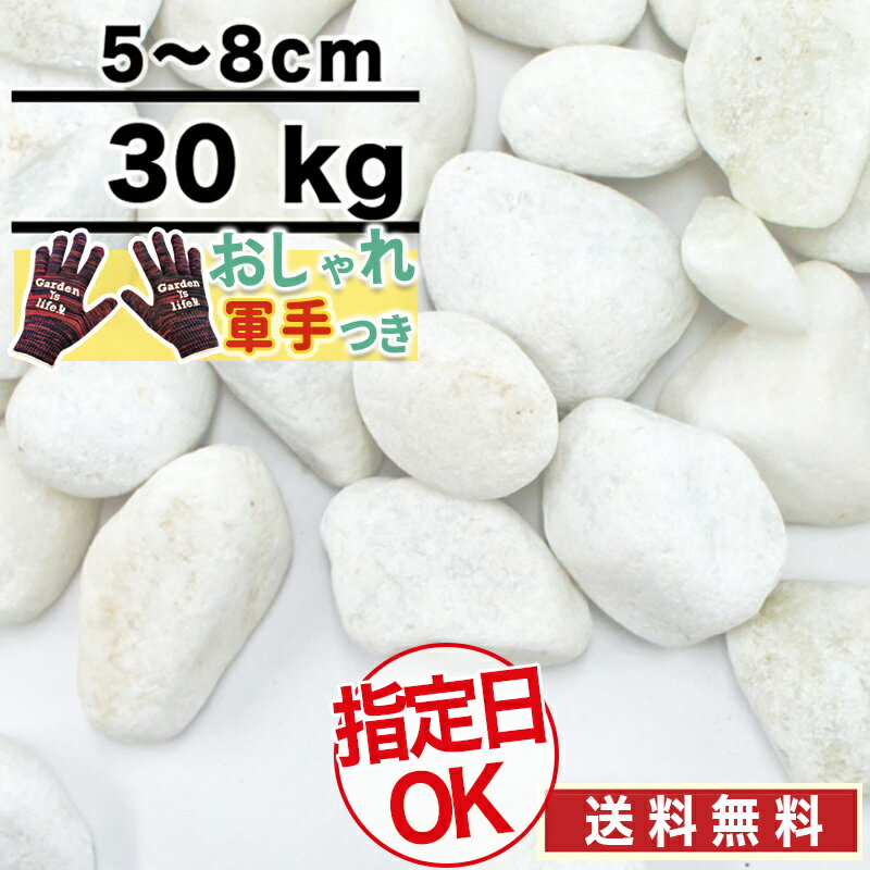砂利 ホワイト 白 玉砂利 大理石の白玉砂利 約5〜8cm 30kg 庭 防犯 おしゃれ 石 白約0.37平米分(敷厚4cm)【おしゃれ軍手付】