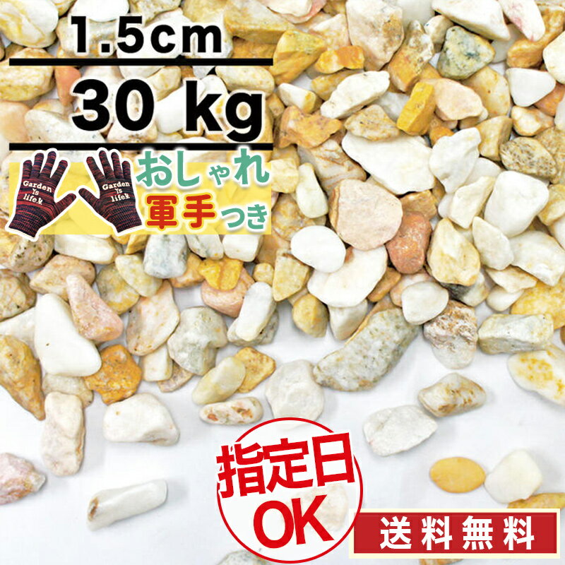 砂利 黄色 砕石 1.5cm 30kg イエローロック 庭 防犯 おしゃれ 石約0.37平米分(敷厚4cm)【おしゃれ軍手付】