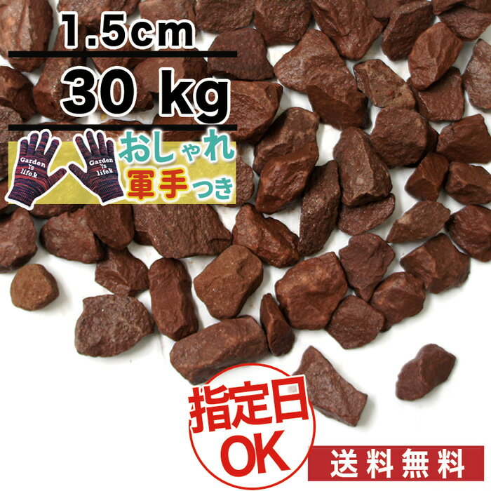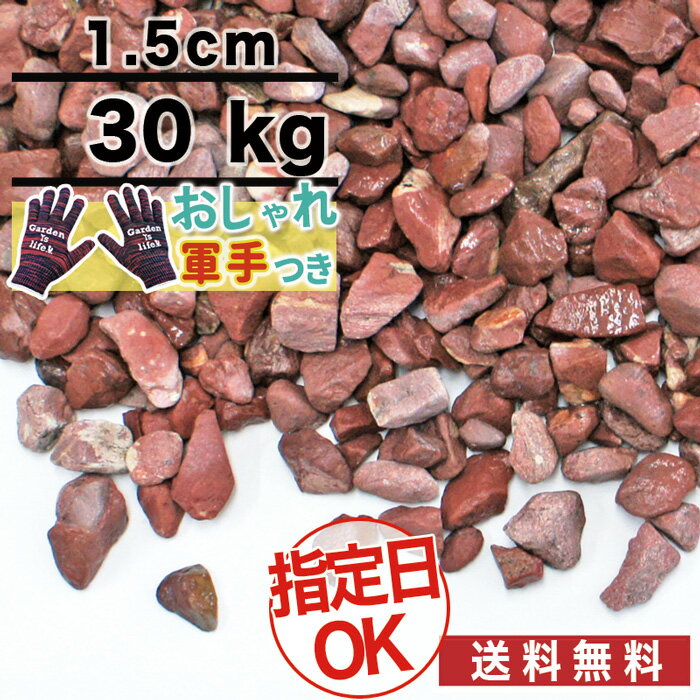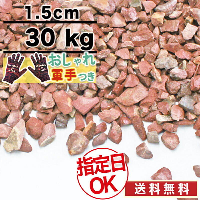 砂利 レッド 赤 砕石 1.5cm 30kg レッドロック 庭 防犯 おしゃれ 石約0.37平米分(敷厚4cm)【おしゃれ軍手付】