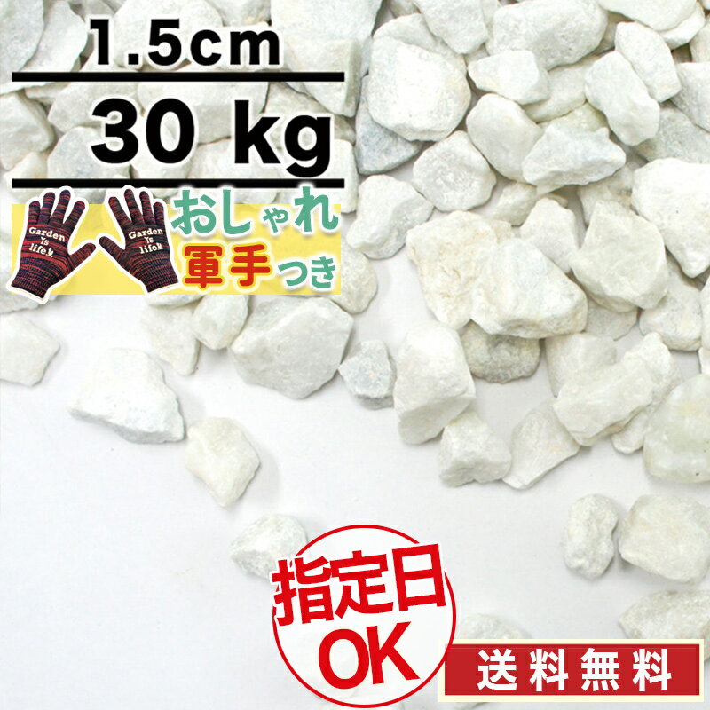 砂利 白 ホワイトロック 白砕石 砂利 天然大理石 直径約1.5cm 30kg 庭 防犯 おしゃれ 石約0.37平米分(敷厚4cm)【おしゃれ軍手付】