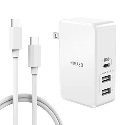 Nimaso PD 3.0-1 USB Type C & 2 USB-A 充電器 「PSE認証済」【Power Delivery対応 61W 3ポート USB-C急速充電器】 折畳式プラグ搭載 ACアダプター iPhone/iPad/Android/MacBook/Nintendo Switch 各種機種対応 【1m Type C to Cケーブル付き】
