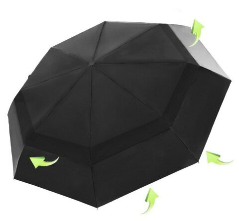 【耐強風性と二重構造の生地】風防式の通気孔つきダブルキャノピーは風が強い日でも安心!層の間を風が通り抜けるので、裏返しになってしまうことはありません。