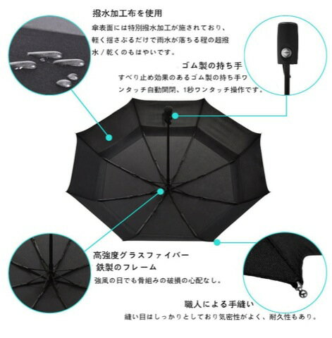 超撥水性:210Tポンジー生地を使用して、傘表面には特別撥水加工が施されており、軽く揺さぶるだけで雨水が落ちる程の超撥水。