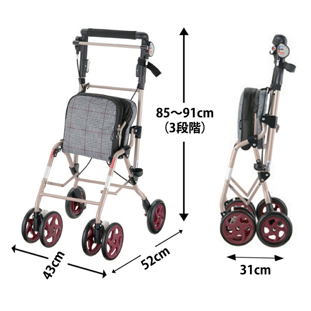 ◆商品詳細 商品説明 サイズ 幅43cm×奥行52cm×高さ85〜91cm(3段階) フレーム アルミ 重 量 3kg 耐荷重 3kg バッグ容量 2.2L 車輪径 15cm 座幅 30cm 座奥行 25cm 座面高さ 43cmカーブもすいすい超軽量タイプ シルバーカー おしゃれ ファム C-1 16,412円(税込) シルバーカー おしゃれ アルキュートCP-G 19,184円(税込) シルバーカー おしゃれ スキット ローズフラワー 14,920円(税込)