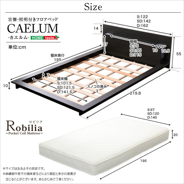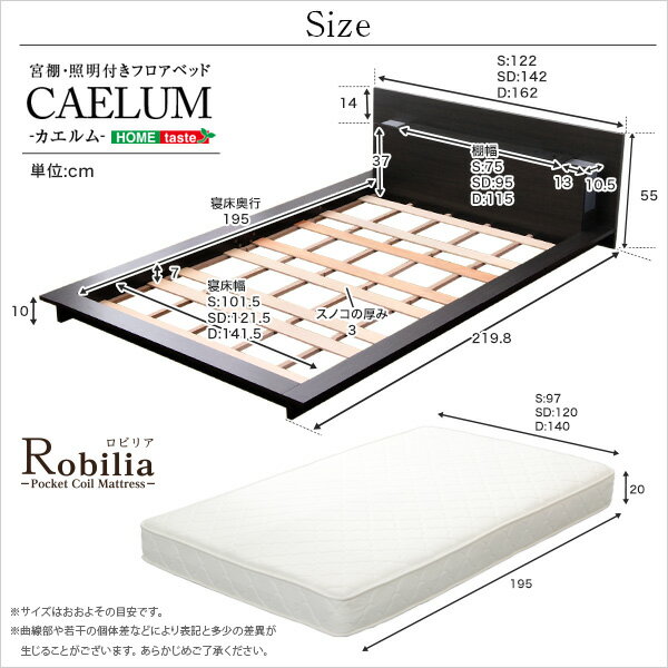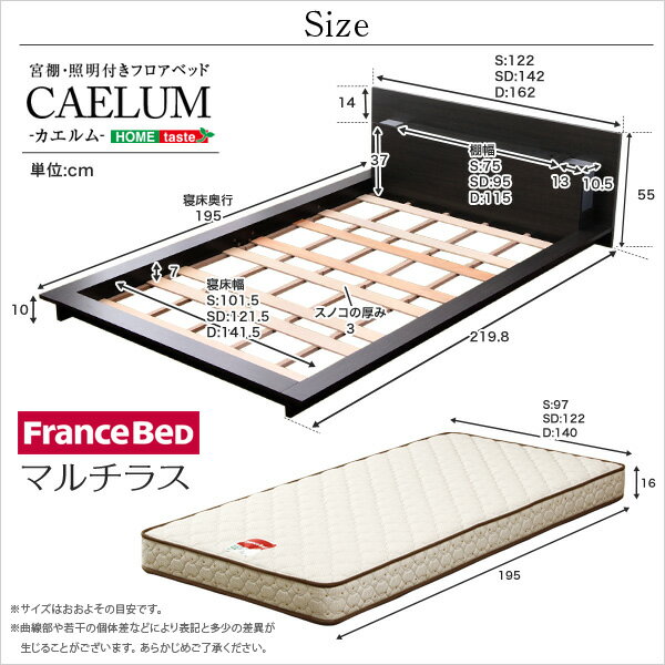 全国送料無料宮、照明、コンセント付きフロアベッドカエルム-CAELUM-(セミダブル)(マルチラススーパースプリングマットレス付き) #家族でenjoy