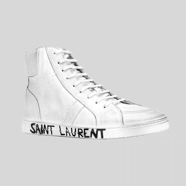 Saint Laurent サンローラン ジョーンスニーカー イン ウォーン ルック レザーホワイト Joe Sneaker in Worn-Look Leather White サンローラン人気のジョーンスニーカー クールなデザインが魅力のサンローランよりデイリーのスタイリングに最適なジョーンスニーカー。
