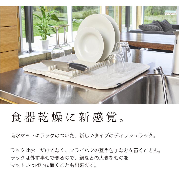 キーワード 水切りラック 吸水マット 食器 収納 取り外し可能 乾燥 キッチン 食器立て お皿 コップ 包丁 お鍋 フライパン カトラリー アウトドア NEW LIFE 2330720149 2330720354 2330720505 201809-01
