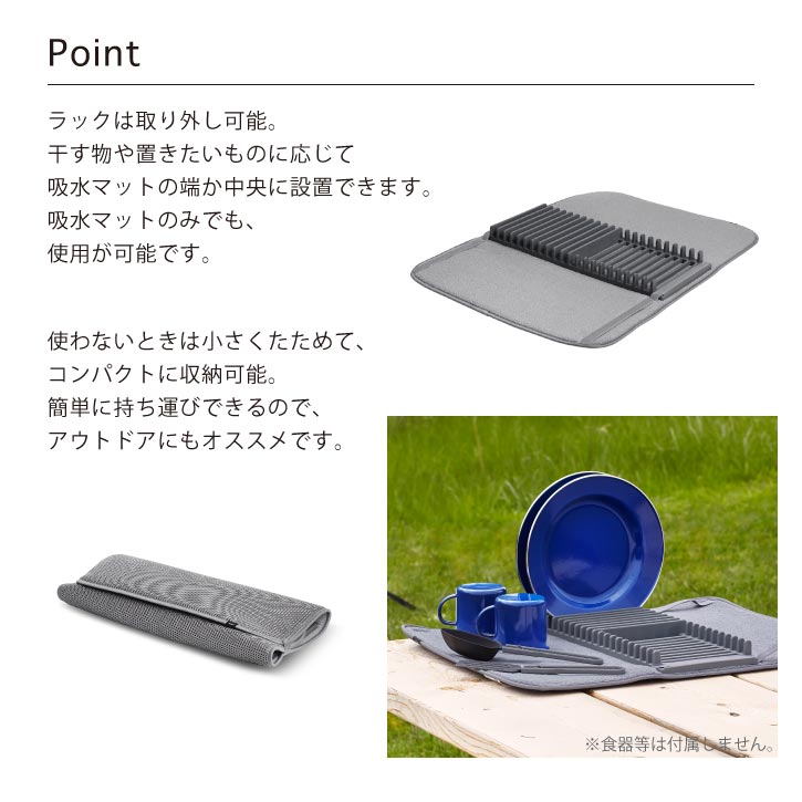 ユードライ ドライングマット / umbra アンブラ / 水切りラック 吸水マット 食器 収納 取り外し可能 乾燥 キッチン 食器立て お皿 コップ 包丁 お鍋 フライパン カトラリー アウトドア NEW LIFE